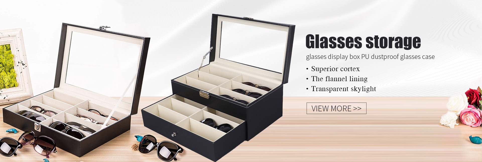 Caja de exhibición de gafas de sol retro portátil Soporte de almacenamiento rectangular de cuero negro