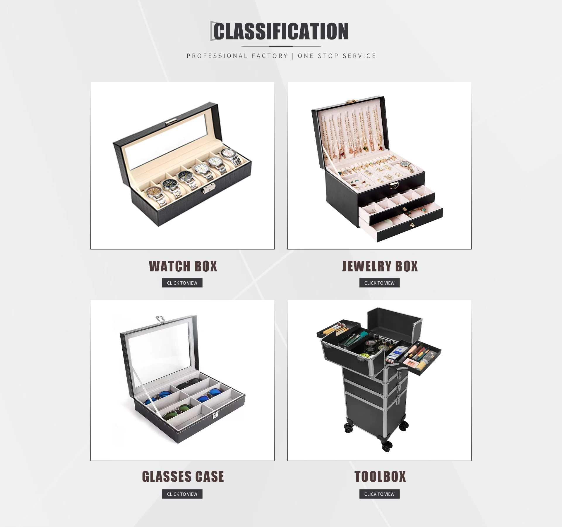 Venta caliente sólido PU cuero reloj y joyería conjunto caja de embalaje elegante exhibición de almacenamiento para artículos de lujo
