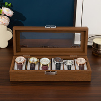 High-End 6-Space orologio in pelle nera scatola di immagazzinaggio con apertura finestra elegante personalizzabile gioielli Organizer per gli uomini e le donne