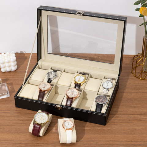 Özelleştirilmiş 2/3/6/12/10 siyah PU deri lüks saat saklama kutusu kadife saat saklama kutusu takı koleksiyonu